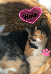Su historia: rescatada del parque junto a su hermana Wanda. Al principio es un poco tímida aunque es una gata muy sociable, tiene un máster en ronroneos y le gusta mucho tumbarse encima de su casa de acogida mientras la acarician.