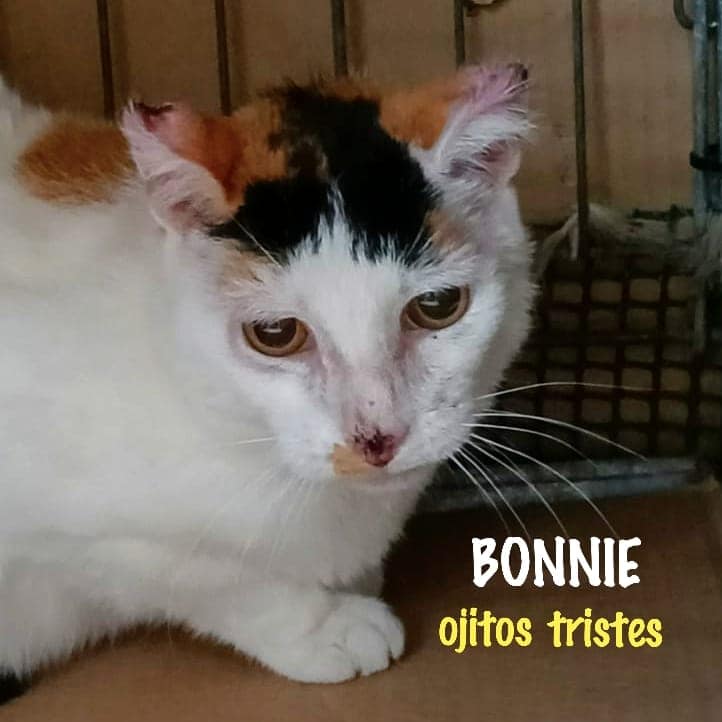 Para continuar ayudándola y costear la operación y tratamiento necesitamos vuestra ayuda, sino nos será imposible tratarla. Sabemos que Bonnie no es una gata casera pero ella también se merece tener una oportunidad. Se quedará sin orejitas y su carita será diferente pero vivirá y la vamos a querer igual.