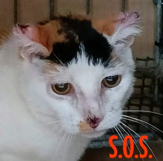 Se le ha hecho todo tipo de pruebas y no mejoraba y en el Hospital Felino nos dijeron que tenía toda la apariencia de ser cáncer y cogieron muestras de tejido de sus orejitas y demás zonas que creyeron convenientes para biopsiar y actuar en consecuencia. Lo más probable es que se confirme este fatal diagnóstico pero los profesionales nos han dado una esperanza, se la podría intervenir quitando el tejido afectado(sus orejitas y parte de su mejilla) dejando la zona limpia de células tumorales malignas y así poder vivir tranquilamente.